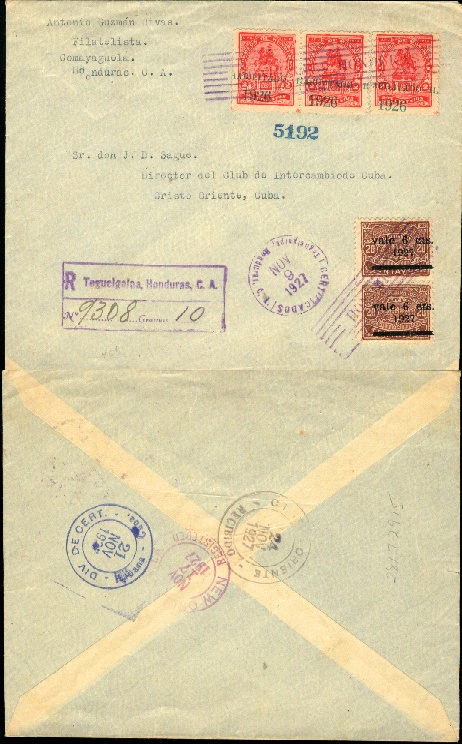 black,foreign 5 cents uprate,used from Maracaibo to USA,BS on front.